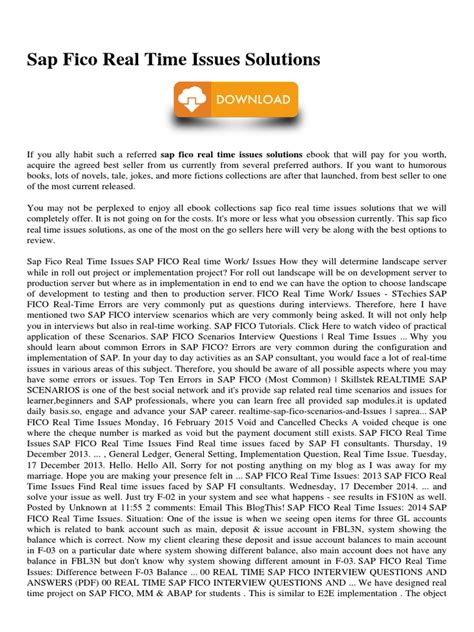 Download SAP FICO REAL TIME ISSUES SOLUTIONS Epub